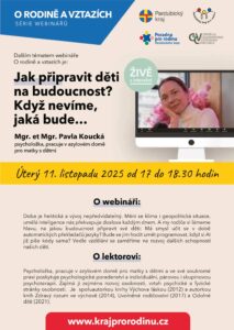 Více informací a odkaz na připojení najdete na webu www.krajprorodinu.cz/rodina/webinare-o-rodine-a-vztazich/webinar-jak-pripravit-deti-na-budoucnost-kdyz-nevime-jaka-bude.
